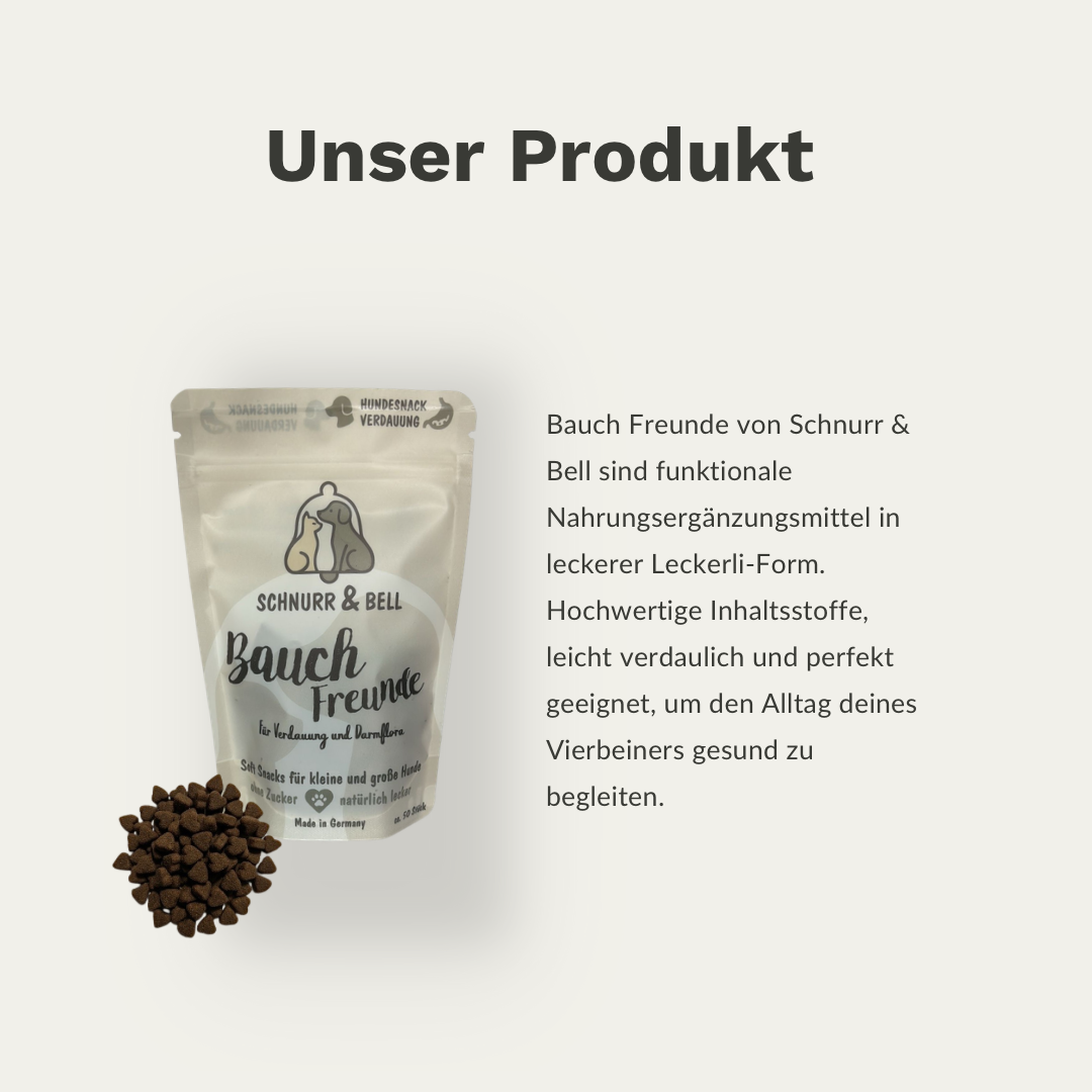 Wir haben echt viel ausprobiert, aber Bauch Freunde ist das erste Supplement, das bei unserer Hündin zu wirken scheint. Und es ist super einfach zu geben.